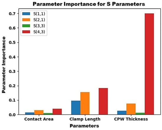 The influence of each input physical parameter on the individual output S-parameters was analyzed using a polynomial regressor, and it was observed that isolation was greatly influenced by input parameters, as shown in Figure 14.