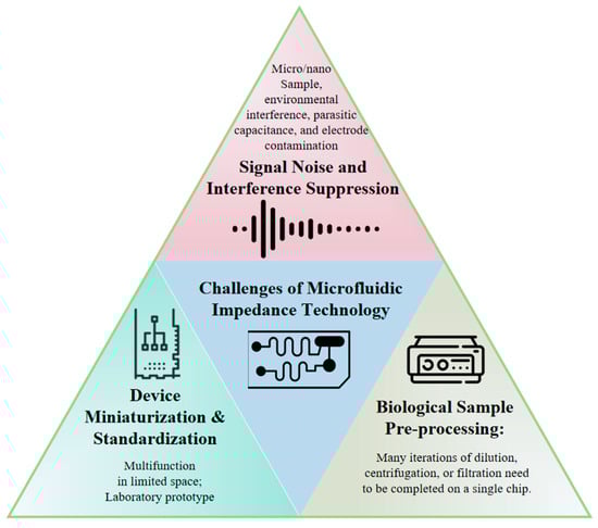 Conceptual map of prevailing challenges in microfluidic impedance detection technology.