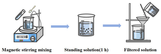 The ink preparation process is illustrated in Figure 3. First, ACOM, PVP, and HMPP are sequentially added to a mixing vessel at room temperature according to the mass ratios listed in Table 1. After thorough dissolution via magnetic stirring, DBE, ethanol, and a defoaming agent are added and stirred until fully dissolved. The resulting mixture is then left to stand for 1 h to allow degassing, enhancing formulation stability. Finally, the solution is filtered to obtain the water-soluble sacrificial ink.