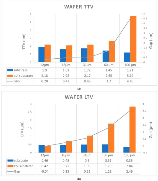 3.2. Wafer TTV and LTV Behavior with Epi Layer Thickness