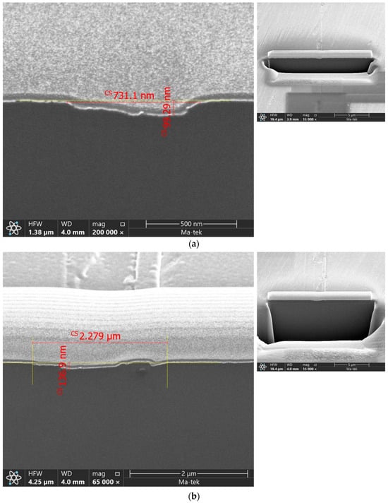 Table 4 further supports this conclusion with data from two additional prime grade SiC substrates, each used for the growth of 12 µm-thick epitaxial layers. One substrate exhibited a relatively high density of surface scratches, while the other showed minimal surface damage post-CMP. Scanning electron microscopy (SEM) and focused ion beam (FIB) analysis (Figure 6) measured scratch depths of 99.29 nm and 136.9 nm, respectively, prior to epitaxy.