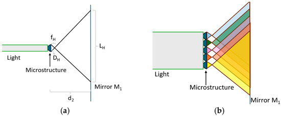 When only considering a single microstructure, as shown in Figure 5a, the spot size on Mirror M1 is Lsingle and W single. In addition, there exists Equation (3).