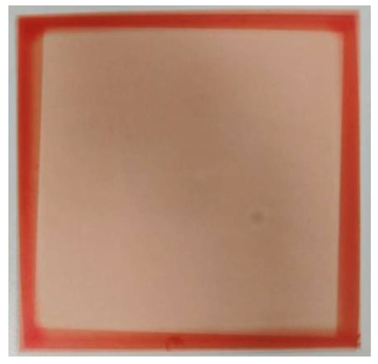 Based on the above design, the optical film with the designed microstructures was prepared using Heidelberg’s MLA100 maskless photolithography system (Heidelberg, Germany). First, the PET substrate was cleaned to remove surface dust and impurities. Subsequently, the photoresist was spin-coated onto the cleaned PET substrate. After that, the substrate with the spin-coated photoresist was dried to solidify the photoresist. Next, the photoresist was exposed according to the designed pattern. After exposure, the photoresist was developed to remove the excess photoresist, and the designed microstructure profile was obtained on the surface. Then, the substrate with the developed photoresist was rinsed and dried. Finally, a completed optical film with the designed microstructure was formed, as shown in Figure 9.