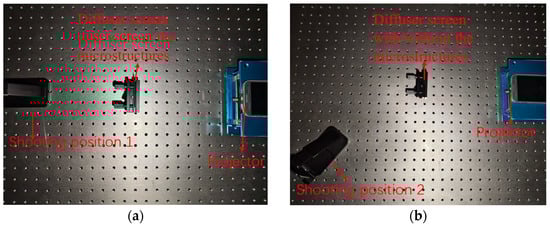 To verify the influence of the optical film on imaging, we set up a simple experimental platform. As shown in Figure 11, it included a projector and a diffuser film with the microstructures. For comparison, a diffuser film without the microstructures was also tested.