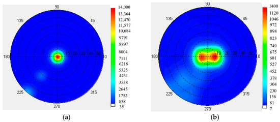 The viewing angle luminance map was measured—using the EZ-LITE viewing angle tester from ELDIM Company (Caen in Normandy, France)—both with and without the optical film, as shown in Figure 13.