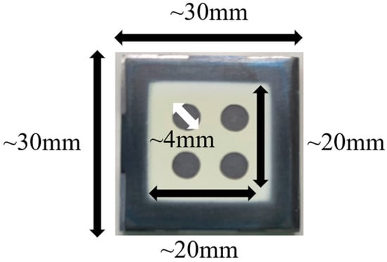 The top electrode was fabricated by sputtering the sol–gel composite. The top electrode was composed of platinum and had a diameter of 4 mm. Optical images of the prepared PZT/PZT composite are shown in Figure 3.