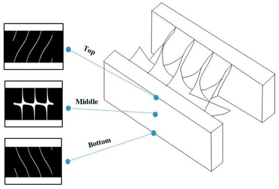 Furthermore, to prevent unintended closure of flow gaps resulting from optical broadening and radical diffusion, the screw pitch was optimized to ensure sufficient spacing between adjacent wall segments in accordance with earlier guidelines. To ensure clear separation between neighboring screw threads and sufficient structural stiffness, a pitch of 280 μm and 480 μm was adopted for the 500 μm- and 800 μm-wide flow channel widths, respectively. The designed microscrew profiles were then fabricated using the same PμSL printing system described earlier.