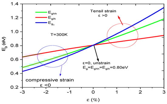 Strain effect on the bandgap energy at room temperature.