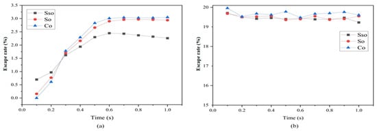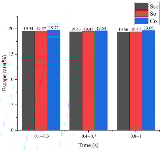 The time step of the solution is 0.01 s, the total number of time steps is 100, auto-saving is performed every 10 steps, and the maximum number of iterations for each time step is 10 times. The ratio of particle escape and the size distribution at different moments are calculated, and the results of the simulation experiments are shown in Table 4, where Sso is sunflower seed oil, So is soybean oil, and Co is canola oil for the convenience of recording.
