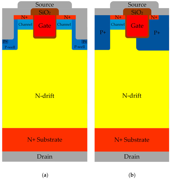 Cross-section of 4H-SiC trench MOSFET: (a) DT-MOSFET; (b) AT-MOSFET.