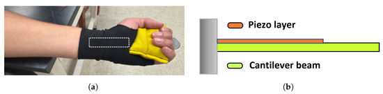In this study, the piezoelectric layer thickness h was fixed at 52 m, as a commercially available PVDF film was used consistently across all experiments. No thickness variation was studied, and the parameter h is treated as a constant in the theoretical model. Furthermore, due to the film’s small thickness relative to the overall wrist brace structure, its influence on the global mechanical stiffness is considered negligible.