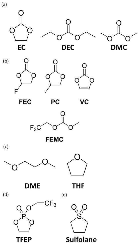- Wölke, C.; Sadeghi, B.A.; Eshetu, G.G.; Figgemeier, E.; Winter, M.; Cekic-Laskovic, I. Interfacing Si-based electrodes: Impact of liquid electrolyte and its components. Adv. Mater. Interfaces 2022, 9, 2101898. [Google Scholar] [CrossRef]