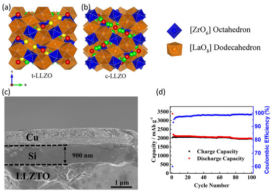 - Ping, W.; Yang, C.; Bao, Y.; Wang, C.; Xie, H.; Hitz, E.; Cheng, J.; Li, T.; Hu, L. A silicon anode for garnet-based all-solid-state batteries: Interfaces and nanomechanics. Energy Storage Mater. 2019, 21, 246–252. [Google Scholar] [CrossRef]