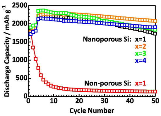 - Si, Q.; Kawakubo, M.; Matsui, M.; Horiba, T.; Yamamoto, O.; Takeda, Y.; Seki, N.; Imanishi, N. Silicon–carbon composite dispersed in a carbon paper substrate for solid polymer lithium-ion batteries. J. Power Sources 2014, 248, 1275–1280. [Google Scholar] [CrossRef]
