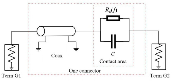 For cascaded connector configurations, the model is expanded by serially combining multiple coaxial transmission line segments and discrete contact interfaces. Each contact interface is parameterized by frequency-dependent contact resistance Rc (f) and parasitic capacitance C, which collectively capture the complex impedance variations introduced by surface roughness and micro-contact phenomena.