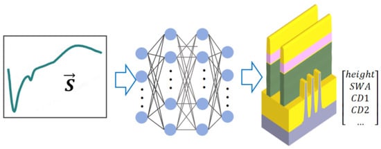 - Fu, Z.Y.; Chein, W.H.; Yang, F.S.; Chen, L.C. Artificial-neural-network-assisted DUV scatterometry for OCD on HAR sub-micron structures. In Proceedings of the Metrology, Inspection, and Process Control XXXVII, Online, 27 February–2 March 2023; SPIE: San Francisco, CA, USA, 2023; Volume 12496, pp. 79–89. [Google Scholar]