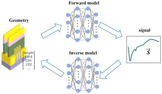 Within advanced semiconductor process technology, precise optical metrology of HAR nanostructures presents significant challenges for traditional electromagnetic solvers, particularly concerning computational efficiency and real-time response capabilities. Researchers are actively developing surrogate models based on neural networks (NNs) that establish mappings between geometric parameters and corresponding spectra, aiming to overcome the challenges associated with inverse problem solving in spectroscopy-based analysis (as depicted in Figure 5). These studies exhibit a significant methodological commonality: