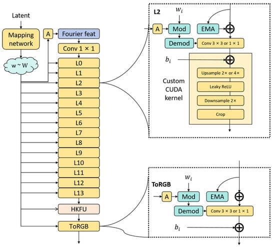 - Karras, T.; Aittala, M.; Laine, S.; Härkönen, E.; Hellsten, J.; Lehtinen, J.; Aila, T. Alias-Free Generative Adversarial Networks. arXiv 2021. [Google Scholar] [CrossRef]