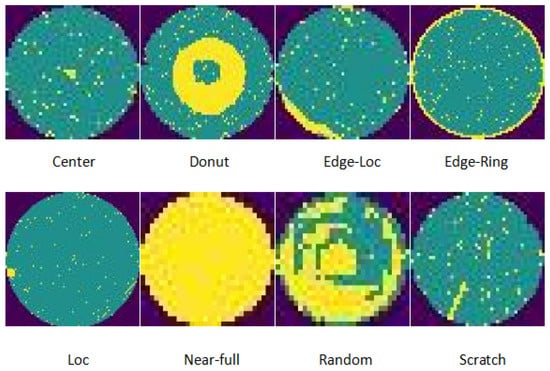 Figure 6, the partial display of the wafer dataset in this article consists of eight categories, with one image selected for each category. The category to which each image belongs is located below each image.