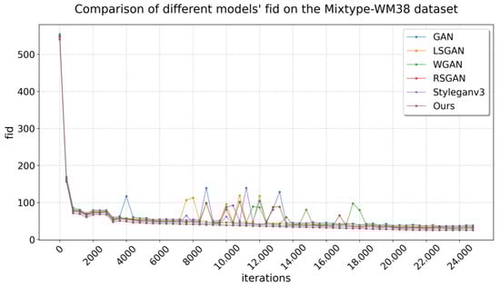 In this section, we mainly describe the performance comparison of our model with other classic and excellent defect generation models on wafer datasets such as Mixtype-WM38 and MIR-WM811K. As mentioned earlier, the evaluation indicators used include FID and SDS. The comparative models discussed in this article include GAN [