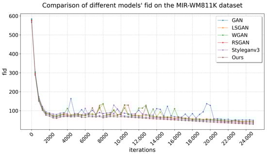 In the MIR-WM811K dataset, only three models achieved a FID below 40, while the others exceeded this threshold. This discrepancy may be attributed to the inferior original data quality of MIR-WM811K compared to Mixtype-WM38, which adversely affects feature fitting. Notably, our model once again attained the lowest FID, demonstrating substantial original data fitting despite only marginal improvements in distribution effects.