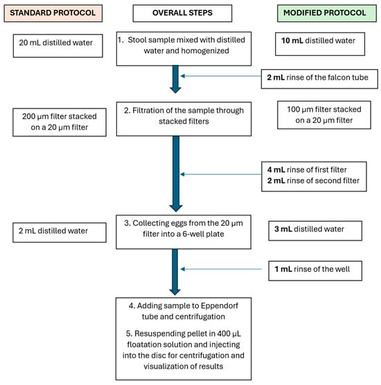 - Cringoli, G.; Maurelli, M.P.; Levecke, B.; Bosco, A.; Vercruysse, J.; Utzinger, J.; Rinaldi, L. The Mini-FLOTAC technique for the diagnosis of helminth and protozoan infections in humans and animals. Nat. Protoc. 2017, 12, 1723–1732. [Google Scholar] [CrossRef] [PubMed]