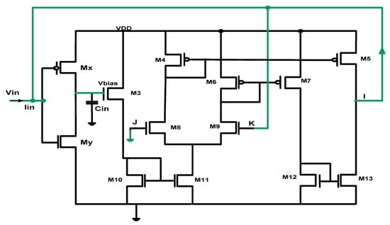 - Compact and Efficient Design: The proposed design uses only 13 transistors, fewer than most reported works: 27 in [28], 24 in [15], 32 in [30], 34 in [33], and 22 in [34]. Additionally, it requires just one active block (OTA) and one capacitor, reducing passive component count compared to designs using resistors like [28,30,33].