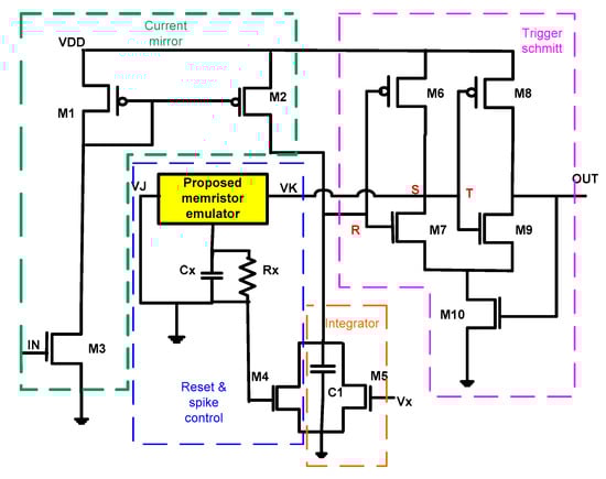 - Kumar, P.; Ranjan, R.K.; Kang, S.-M. A Memristor Emulation in 180-nm CMOS Process for Spiking Signal Generation and Chaos Application. IEEE Trans. Circuits Syst. I Regul. Pap. 2024, 71, 1757–1770. [Google Scholar] [CrossRef]