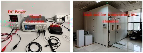 To verify the effectiveness of the dual adaptive Kalman filter mentioned in this article, random errors in the IFOG output sequence are suppressed. First, select three 120 IFOGs, marked as IFOG-A, IFOG-B, and IFOG-C; then, collect static data for 5 h for each IFOG, at 1 Hz, and select the short-term data for the first 30 min. Model the random error; finally, based on the dual adaptive Kalman filter (denoted as DSHKF) proposed in this paper, ARW error suppression processing is performed on three groups of IFOG data. In addition, the experimental results of ARW error filtering by adaptive Kalman filter (VSHKF) and classical Kalman filter (CKF) based on covariance matching are taken as the control experimental group, and the Allan variance is uniformly carried out after filtering. The equipment used for the experiment of random error suppression of fiber optic gyroscopes is shown in Figure 3 (from left to right are fiber optic gyroscope, high and low temperature test chamber). The model information of the control experimental group is shown in Table 1.