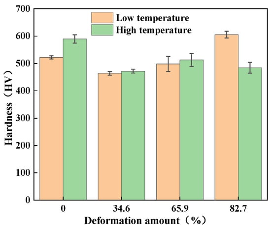 Hardness change diagram of tungsten alloy under different deformation conditions.
