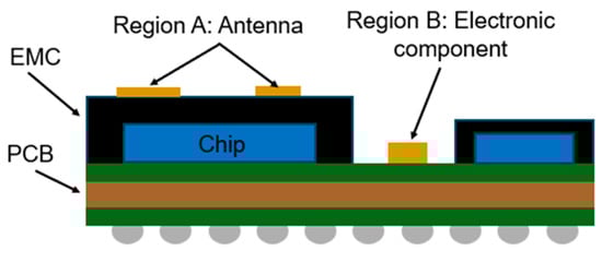 - Tai, M.F.; Kok, S.L.; Mukai, K. EMI shielding performance by metal plating on mold compound. In Proceedings of the 2016 IEEE 37th International Electronics Manufacturing Technology (IEMT) & 18th Electronics Materials and Packaging (EMAP) Conference, Georgetown, Malaysia, 20–22 September 2016; pp. 1–4. [Google Scholar] [CrossRef]
