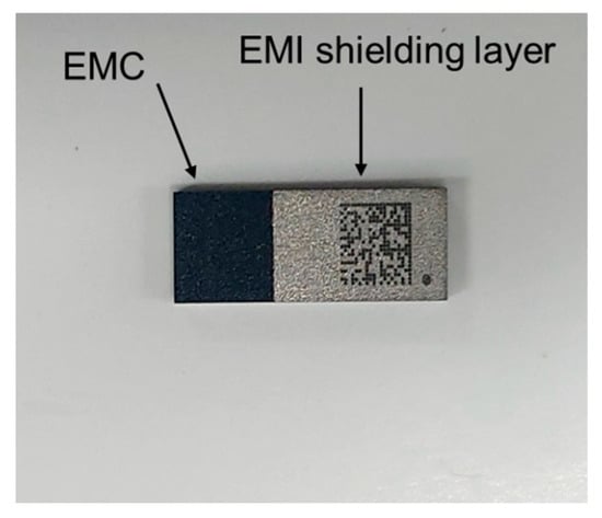 Picture image of the semiconductor package coated on EMI shielding layer.
