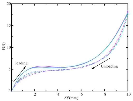 - Hyland, J.E.; Frecker, M.I.; Lesieutre, G.A. Optimization of Honeycomb Contact-Aided Compliant Cellular Mechanism for Strain Energy Absorption. In Proceedings of the ASME 2012 International Design Engineering Technical Conferences and Computers and Information in Engineering Conference, Chicago, IL, USA, 12–15 August 2012; Volume 4: 36th Mechanisms and Robotics Conference, Parts A and B. ASME: New York, NY, USA, 2013; pp. 311–320. [Google Scholar] [CrossRef]