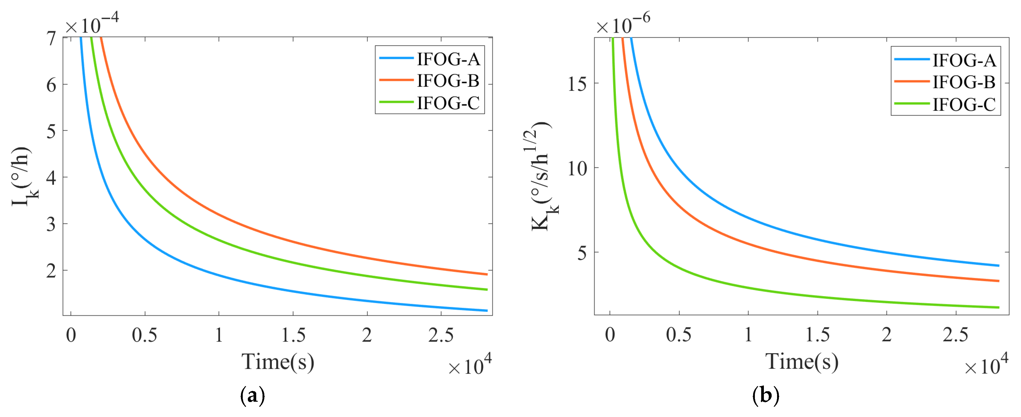 21]. It can be seen from the above analysis that the most important factor affecting the stability of the IFOG signal is the ARW error, while the BI error and RRW error are also important influencing factors [
