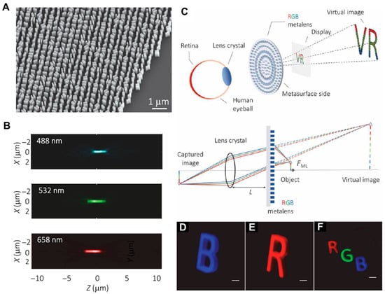 - Li, Z.; Fan, X.; Chen, W.T.; Zhu, A.Y.; Capasso, F. Meta-Optics Achieves RGB-Achromatic Focusing for Virtual Reality. Sci. Adv. 2021, 7, eabe4458. [Google Scholar] [CrossRef]