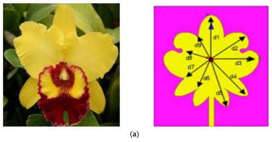 Bionic antennas with wider bandwidth and smaller size have become an alternative to conventional antennas. From the biologically inspired butterfly-like antenna [98] to the leaf antenna [99] and the snowflake antenna [100] in the abiotic world, bionic structures provide antenna engineers with more design ideas. As shown in Figure 12a, the orchid-shaped antenna proposed by [101], based on the perturbation method (PM), modifies the shape of the traditional circular patch antenna and achieves miniaturization by introducing symmetrical petal-like edges, which maintains high gain over a wide bandwidth compared to the traditional design. Gangadhara Mishra and Sudhakar Sahu designed a dual-band tree-shaped microstrip patch antenna, as shown in Figure 12b, with ultra-broadband characteristics from 2.2 GHz to 19.5 GHz in the IEEE802.16 standard (Wi-MAX) band [102] and wireless local area network (WLAN) band resonance, and achieved the highest gain of 7.5 dB over the entire operating band [103]. As shown in Figure 12c, Asutosh Mohanty and Sudhakar Sahu designed a four-port multiple-input–multiple-output (MIMO) antenna based on the shape of maple leaf pods with high bandwidth, omnidirectional radiation pattern, and an SIW structure that can provide higher body isolation [104].