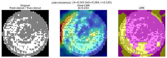 - Selvaraju, R.R.; Cogswell, M.; Das, A.; Vedantam, R.; Parikh, D.; Batra, D. Grad-CAM: Visual explanations from deep networks via gradient-based localization. In Proceedings of the 2017 IEEE International Conference on Computer Vision (ICCV), Venice, Italy, 22–29 October 2017; pp. 618–626. [Google Scholar] [CrossRef]