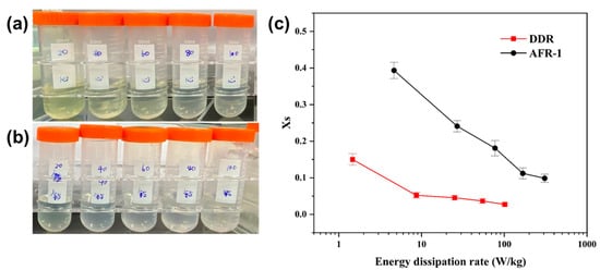 The particle size distributions in Figure 10f–j and Figure 11f–j clearly show DDR’s superior uniformity, particularly at higher flow rates, where its geometric standard deviation ( σ g = 1.27 at 100 m L · m i n 1 ) is 14% narrower than AFR-1’s best performance ( σ g = 1.47). The flow rate dependence presents particularly revealing contrasts: