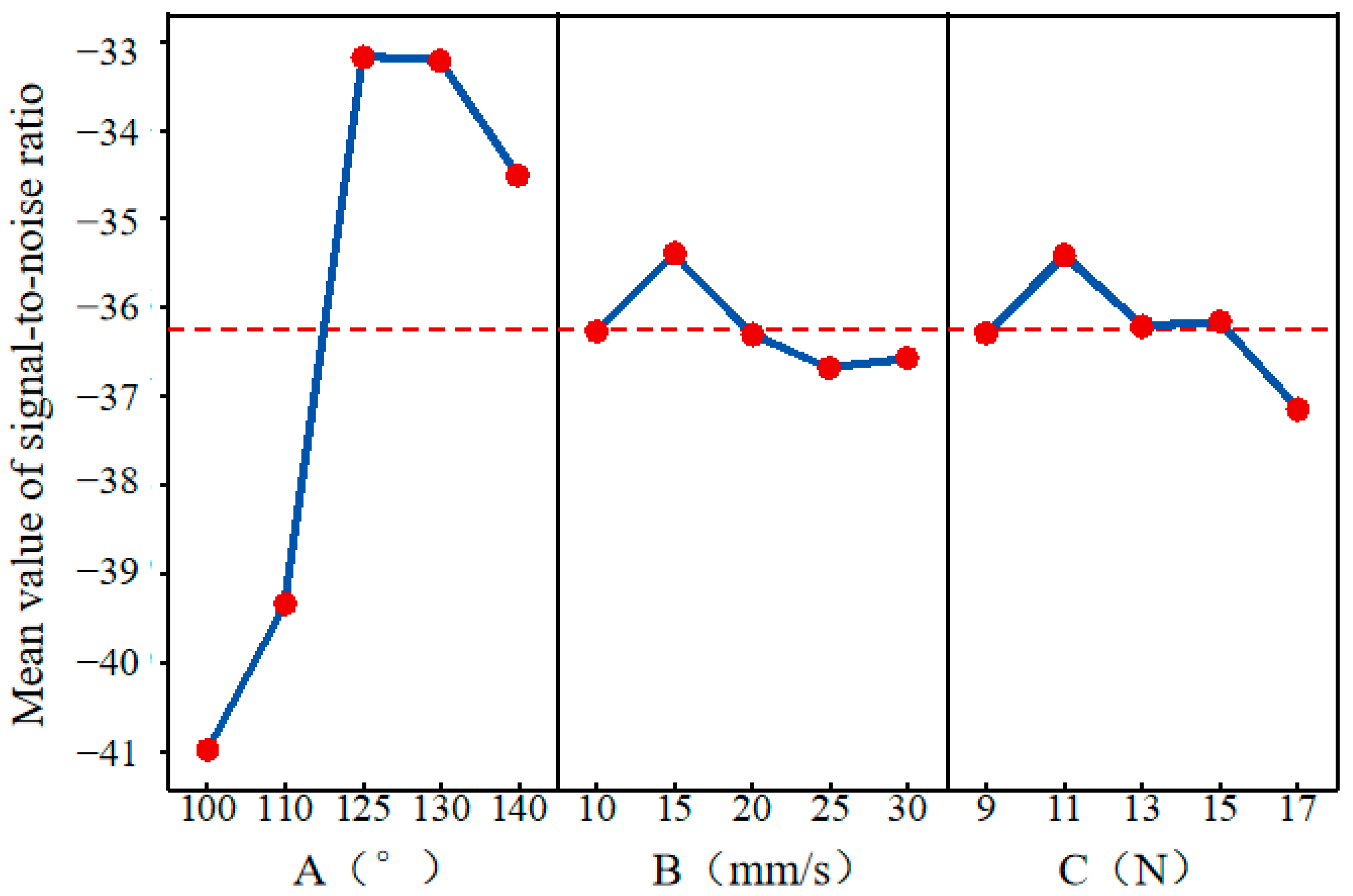 3.2. Analysis of Variance for Signal-to-Noise Ratio