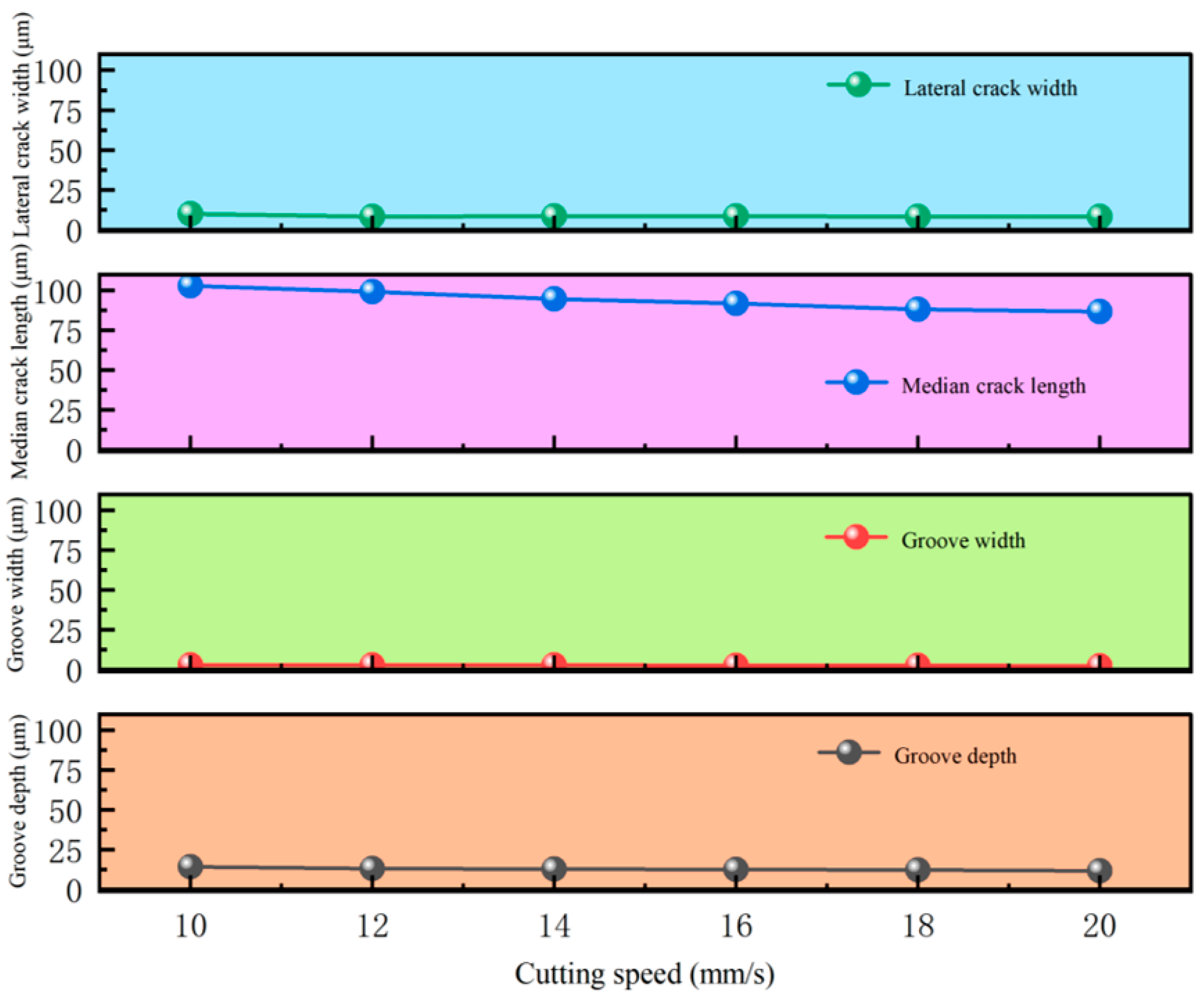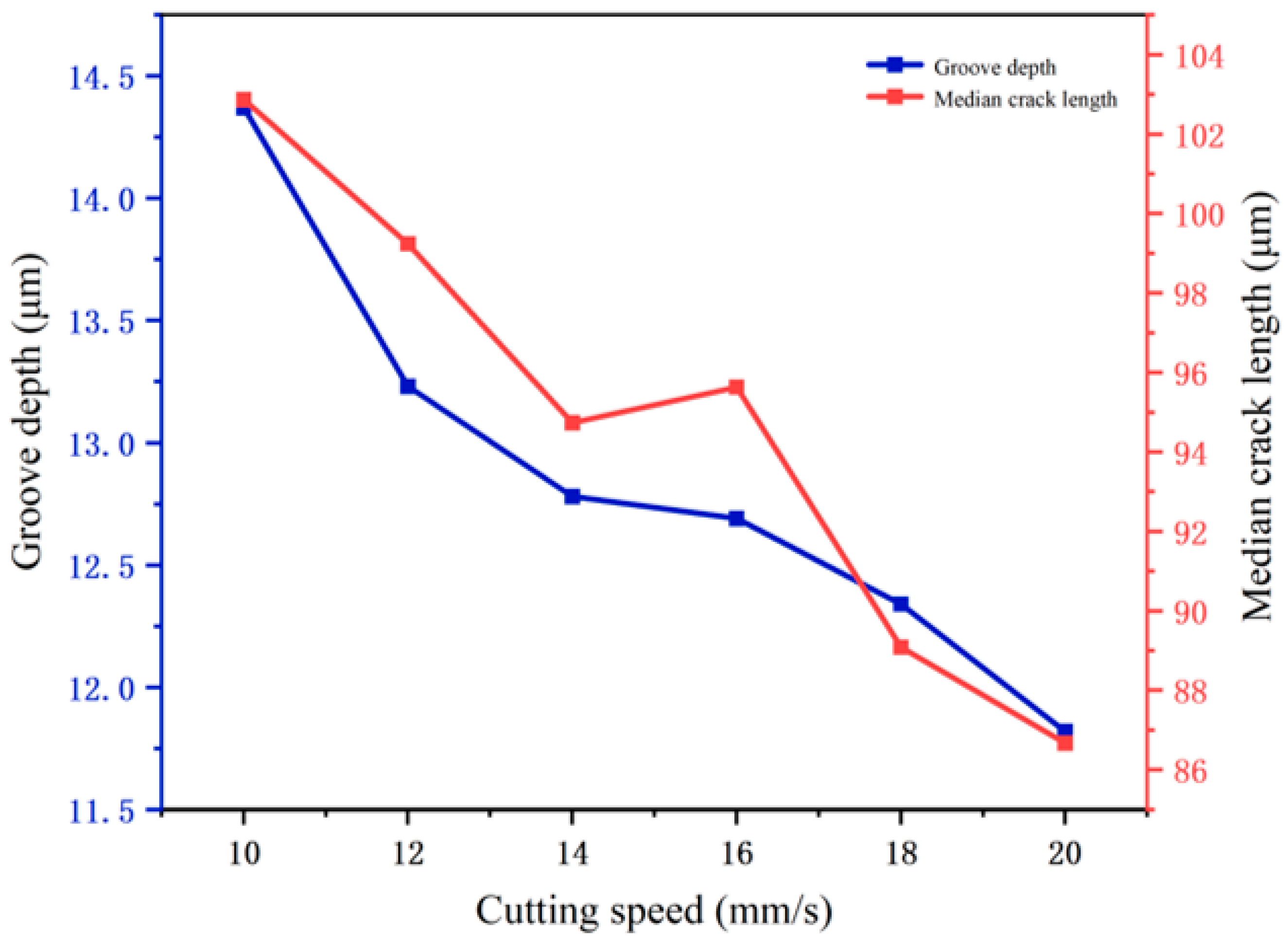 4.2.2. Influence of Cutting Speed on Cross-Sectional Morphology and Median Cracks