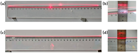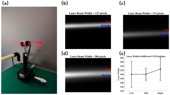 As shown in Figure 11e, the spot widths at all three positions are within the range of 137–270 pixels. This indicates that no significant trend of widening in the middle is observed, and the vertical diffusion of the laser point is still within a very small range.