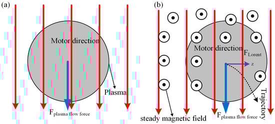 Schematic diagram of plasma forces: (a) plasma, and (b) the motion track of the magnetic field force on the plasma.