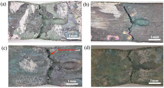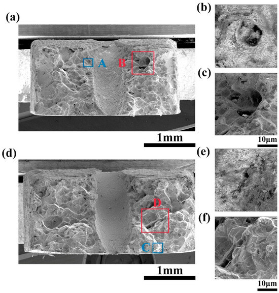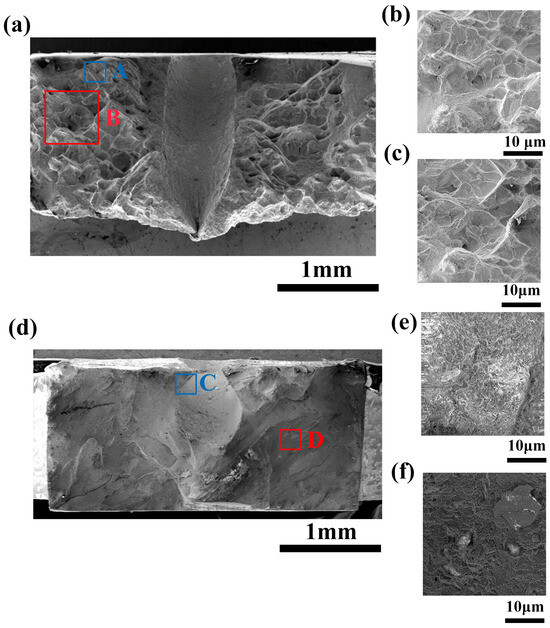- Pore aggregation fracture is the fracture mechanism of film-cooling holes processed by femtosecond laser, EDM, and EDM-combined abrasive flow. The fracture surface is characterized by multiple square regions formed by crack propagation, with porosity and looseness serving as the crack initiation sources. In contrast, the film-cooling holes obtained by femtosecond laser combined with abrasive flow machining exhibit dissociation fractures, and the fracture surface presents a relatively smooth dissociation surface.