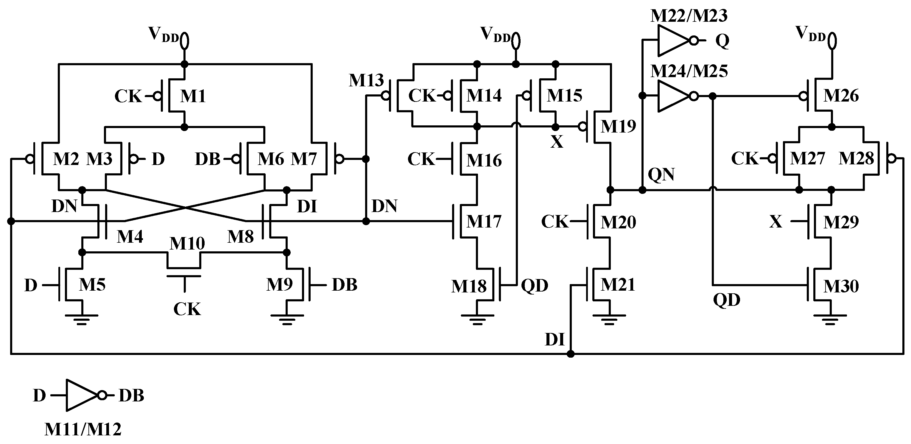 - Kim, Y.; Jung, W.; Lee, I.; Dong, Q.; Henry, M.; Sylvester, D.; Blaauw, D. A static contention-free single-phase-clocked 24 T flipflop in 45 nm for low-power applications. In Proceedings of the 2014 IEEE International Solid-State Circuits Conference Digest of Technical Papers (ISSCC), San Francisco, CA, USA, 9–13 February 2014; pp. 466–467. [Google Scholar]
