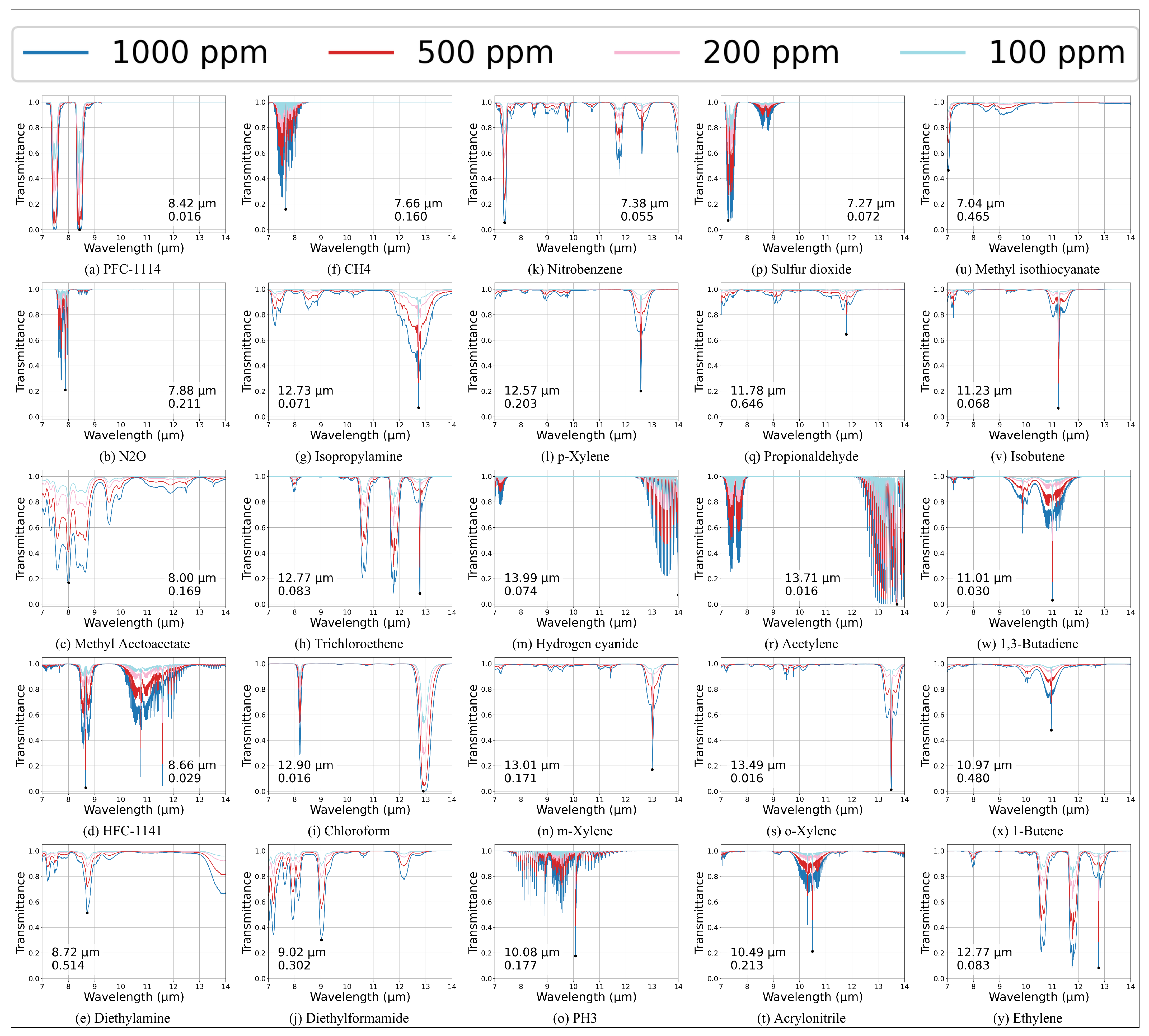 - Johnson, T.J.; Sams, R.L.; Sharpe, S.W. The PNNL quantitative infrared database for gas-phase sensing: A spectral library for environmental, hazmat, and public safety standoff detection. In Proceedings of the Chemical and Biological Point Sensors for Homeland Defense, Providence, RI, USA, 13–14 October 2004; SPIE: Bellingham, WA, USA, 2004; Volume 5269, pp. 159–167. [Google Scholar]