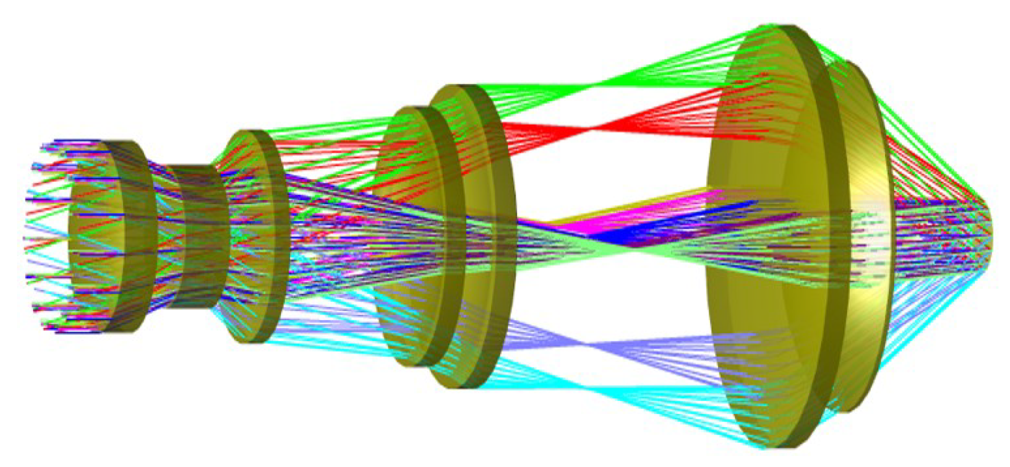 - Li, Y. Research on Compact Division-Aperture Snapshot Spectral Imaging System. Ph.D. Thesis, University of Chinese Academy of Sciences, Xi’an, China, 2018. [Google Scholar]