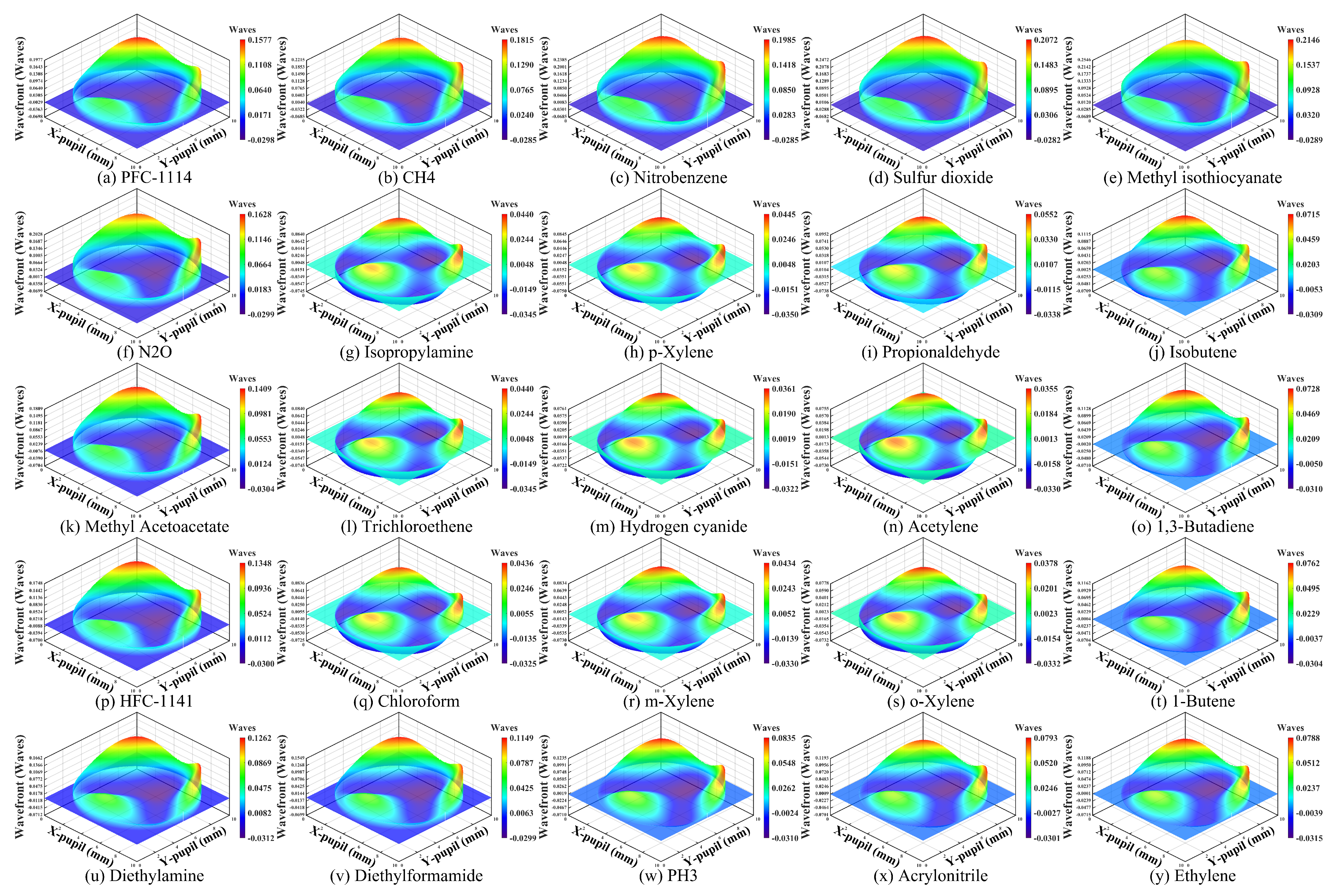 - Wang, P.; Tang, G.; Liu, S.; Yang, Y.; Zhu, S.; Wang, S.; Liu, X.; Lu, J.; Wang, J.; Li, C.; et al. Study on the lower limit of gas detection based on the snapshot infrared multispectral imaging system. Opt. Express 2024, 32, 27919–27930. [Google Scholar] [CrossRef] [PubMed]