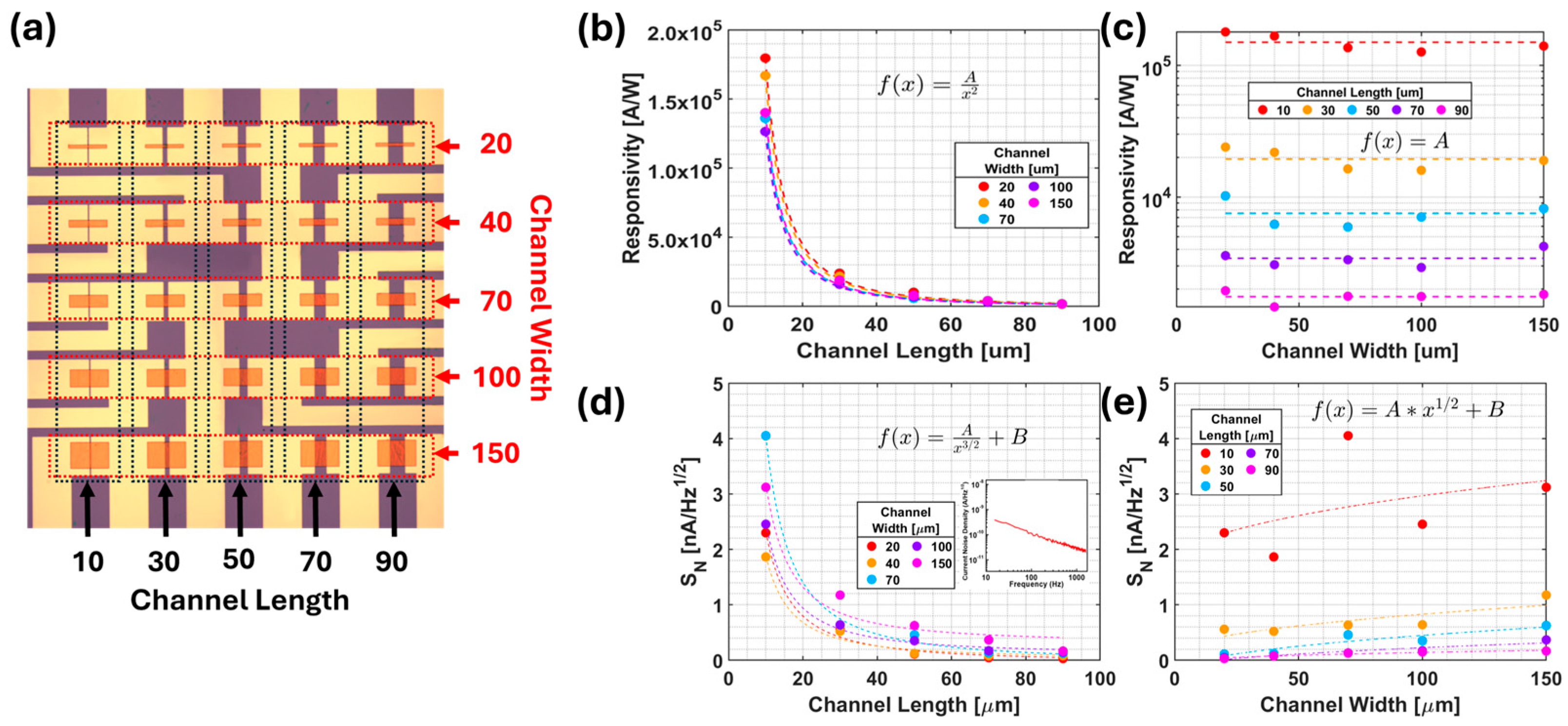 - Shultz, A.; Liu, B.; Gong, M.; Hernandez, F.C.R.; Wu, J. Pixel Geometry Effect on PbS Quantum Dot/Graphene Nanohybrid Broadband Photodetectors. Adv. Opt. Mater. 2024, 12, 2302675. [Google Scholar] [CrossRef]