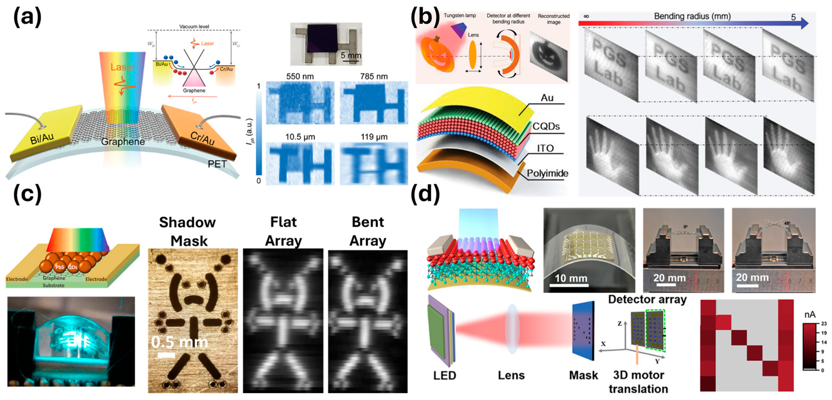 | PbS QD/Gr array | Vis-NIR | 5–90 | >5 mm | Direct/scanning | Ref. [86] |