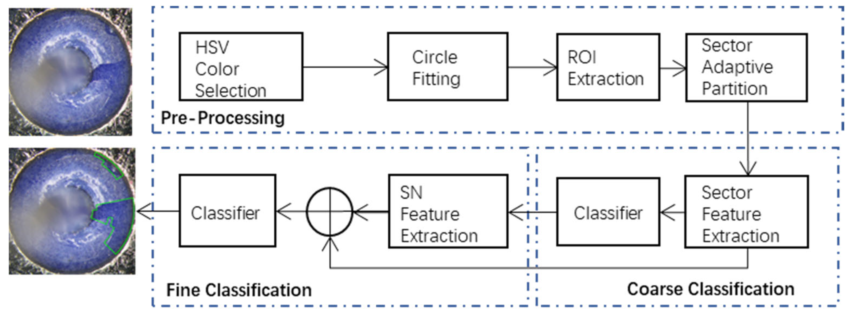 Although the proposed framework is slower than deep-learning-based methods, its inspection speed remains practical for industrial applications where accuracy and reliability are prioritized over extreme real-time performance. Future work will focus on improving inspection efficiency without sacrificing accuracy, such as optimizing sector partition strategies, reducing feature redundancy through feature selection, and accelerating feature extraction and classification via parallel processing. These improvements are expected to further enhance the applicability of the proposed framework for large-scale industrial deployment.